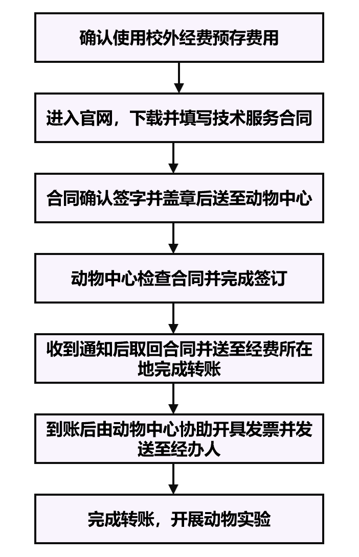 凡在南开大学实验动物中心开展动物实验的人员,均须按照本流程完成各项准备工作,经审批通过后方可进入中心开展实验。